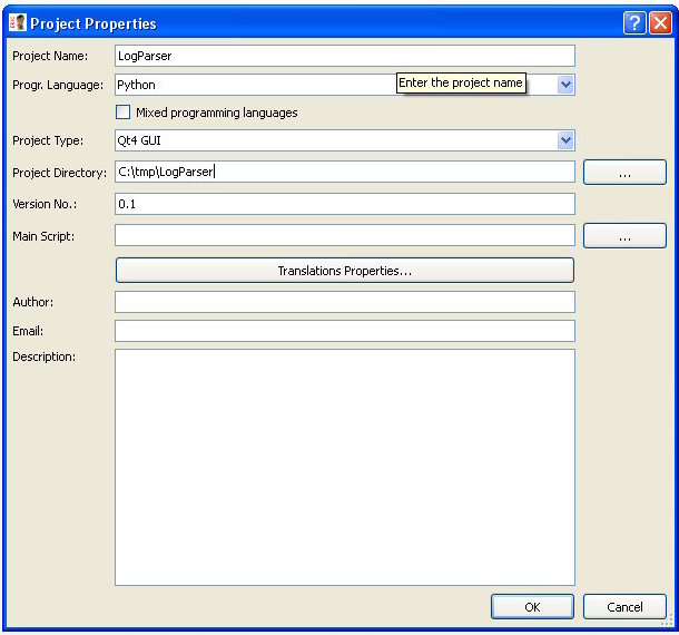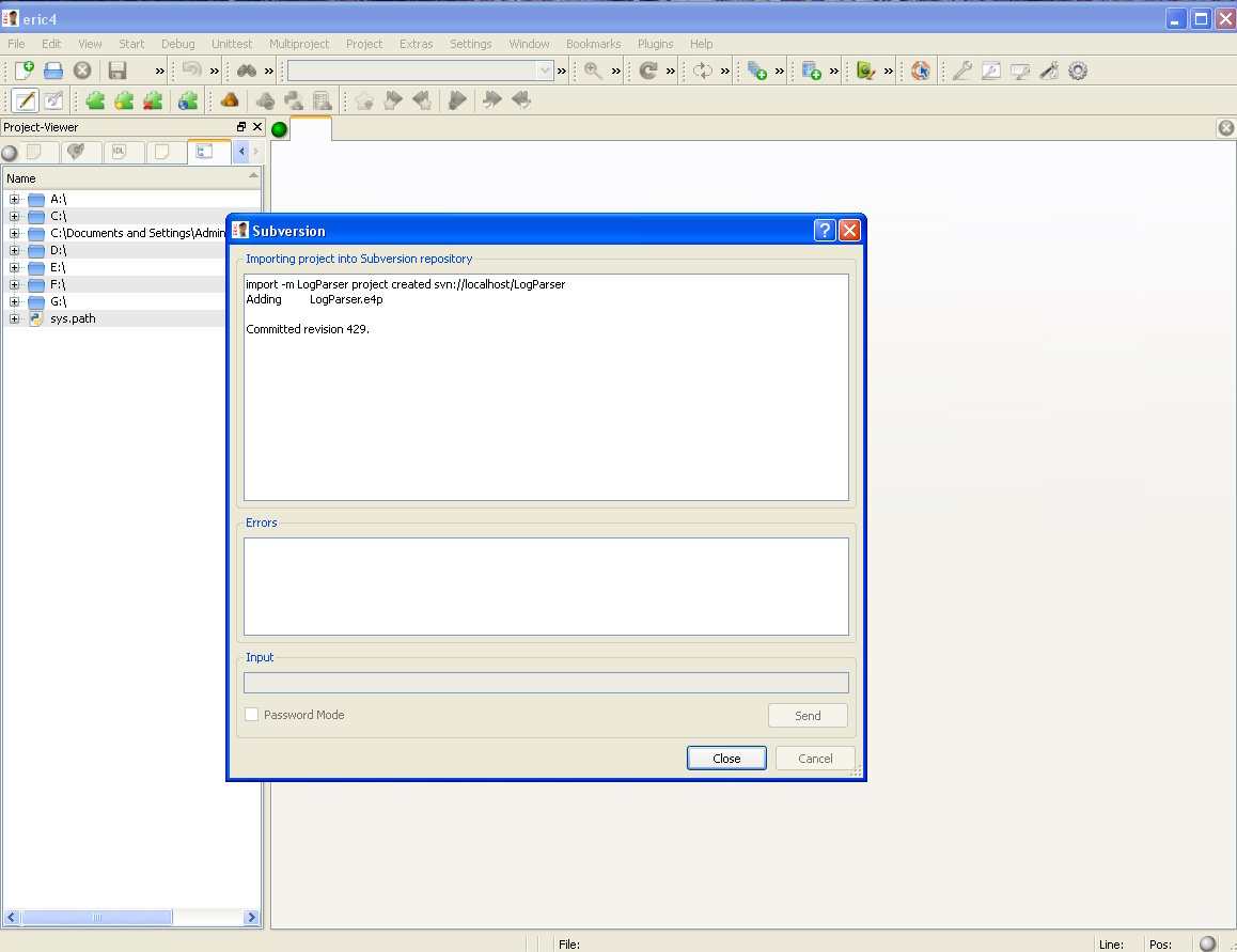 So far, we have created a new eric4 project, have also created it in the subversion repository, and we can start to work on it.