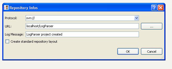 Another dialog is shown, asking if we want the project to be under VCS. We choose subversion (* See foot note). Click on 'Ok'.